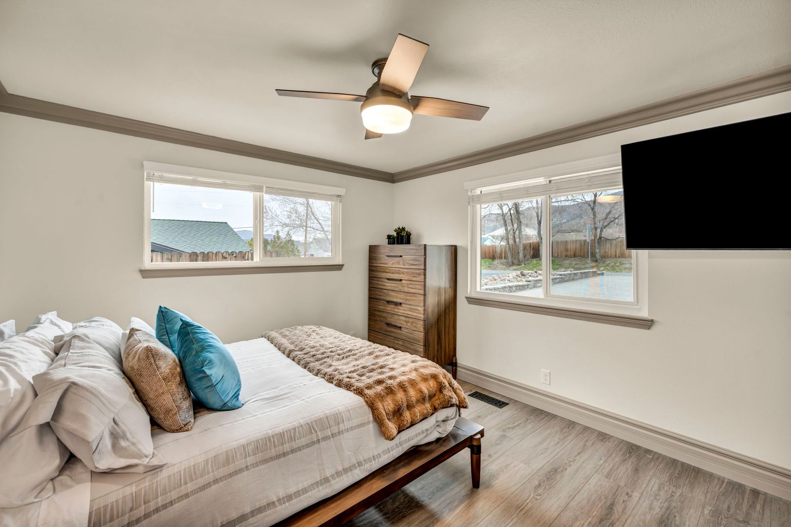 “Our house and everything we owned burned to the ground in a fast-moving wildfire on September 7, 2024. Three days later our insurance and Blue Sierra Realty arranged for us to move in to a fully furnished single level house with a fenced backyard for our two senior dogs.”