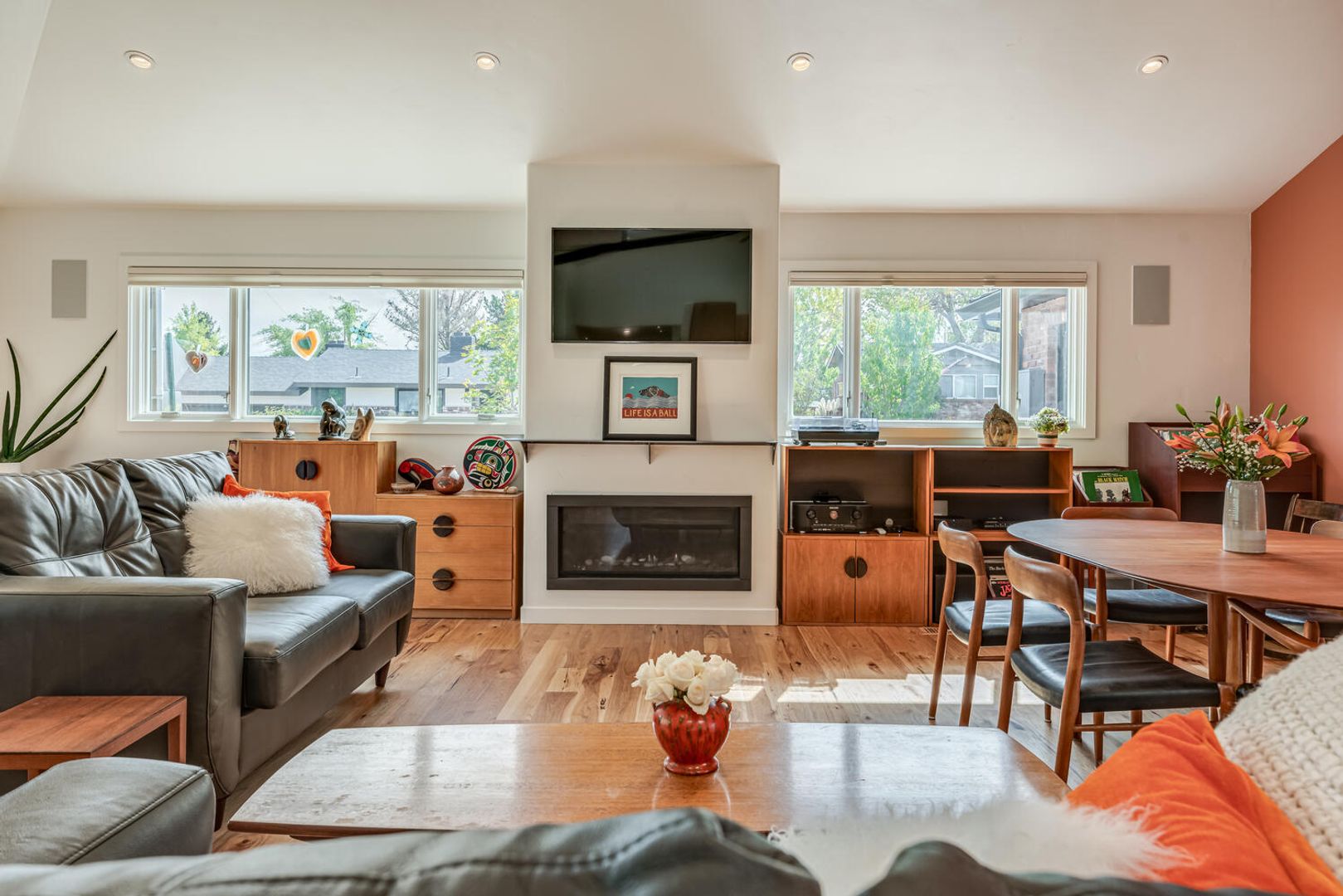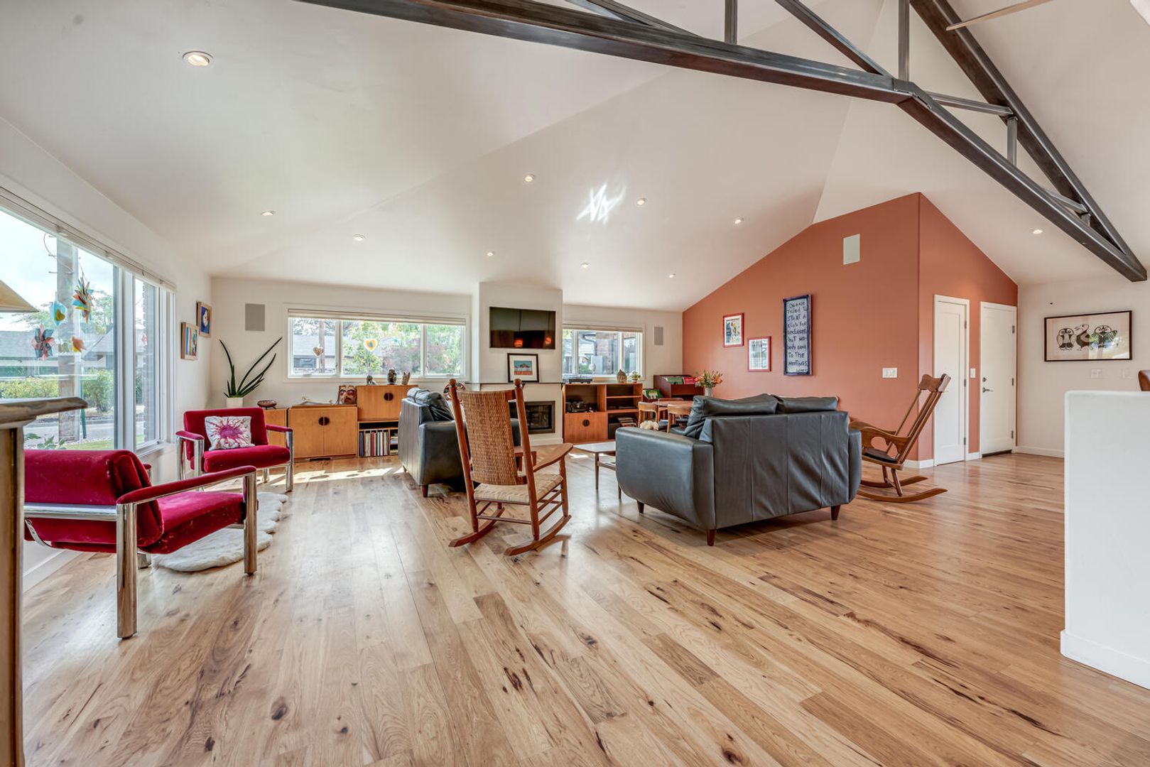 Where to start? This FULLY FURNISHED mid-century stunner blends iconic design with all the modern luxuries you crave. Inside, classic mid-century architecture meets clean, contemporary comfort. The open great-room concept is ideal for entertaining, with natural light pouring across hardwood floors and highlighting striking exposed beams. The space feels warm, stylish, and effortlessly cool—perfect for hosting friends or unwinding at home. The kitchen completes the picture with sleek, modern appliances and a layout that keeps you connected to the action.