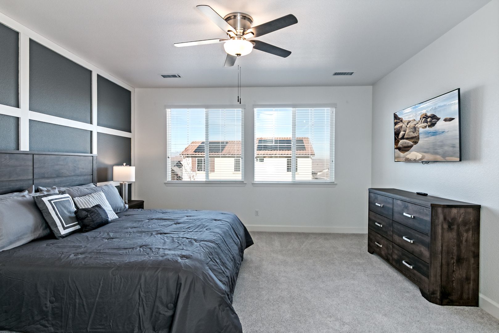 Welcome to a true Damonte Ranch gem of a home located near the wetland walking path and a short drive to shopping. This FULLY FURNISHED home features an open kitchen concept that allows family and friends to mingle around the kitchen and family room, while those wanting privacy can hang in the bedrooms upstairs. Host a BBQ with the spacious backyard and plenty of room for toys with the 3 car-tandem garage. This home offers amazing access to Damonte Ranch High School (3 minutes), downtown Reno (20 minutes), Mt. Rose ski resort (20 minutes), Lake Tahoe (30 minutes), Carson City (20 minutes) and the Veterans Bypass to Tahoe Regional Industrial Center (35 minutes). Just pack a toothbrush and bring your clothes (as many as you like, since the primary closet is huge!) and every else is provided. A great home to get to know south Reno.